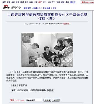 6月2日上午,庙前街道办事处的30余名社区干部来到山西晋康风湿病医院,进行了一次全面体检。社区干部每天奔波在街道中,服务于百姓家庭,忙碌于各种家长里短的琐事,工作量很大。但他们中有相当一部分人没有医疗保险,该医院得知后,主动提出给他们做免费的身体检查。