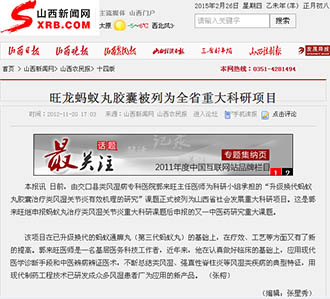 本报讯 日前,由交口县类风湿病专科医院郭来旺主任医师为科研小组承担的“升级换代蚂蚁丸胶囊治疗类风湿关节炎有效机理的研究”课题正式被列为山西省社会发展重大科研项目。这是郭来旺继申报蚂蚁丸治疗类风湿关节炎重大科研课题后申报的又一中医药研究重大课题。