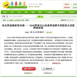 类风湿性关节炎是神以关节病变为主的慢性全 身性常见病,致残率极高,素有“不死的癌症”之称, 被世界卫生组织定为疑难顽症。有史以来无数医学 界人士力图攻此难关,予以根治,但均投有获得理想 效果。那么,这种顽症能不能攻克呢?郭来旺这位曾当过赤脚医生、部队卫生员、上过卫校、外出进修深造技术步步提高的中年大夫的回答是“风湿虽难治, 绝非不可治。”医生的天职造就了他坚韧的性格,越是顽症越要攻。他在临床中耳闻目睹许许多多患者所受风湿顽症折磨而焦急,越发从心底里萌生了攻克风湿顽症的强烈愿望。